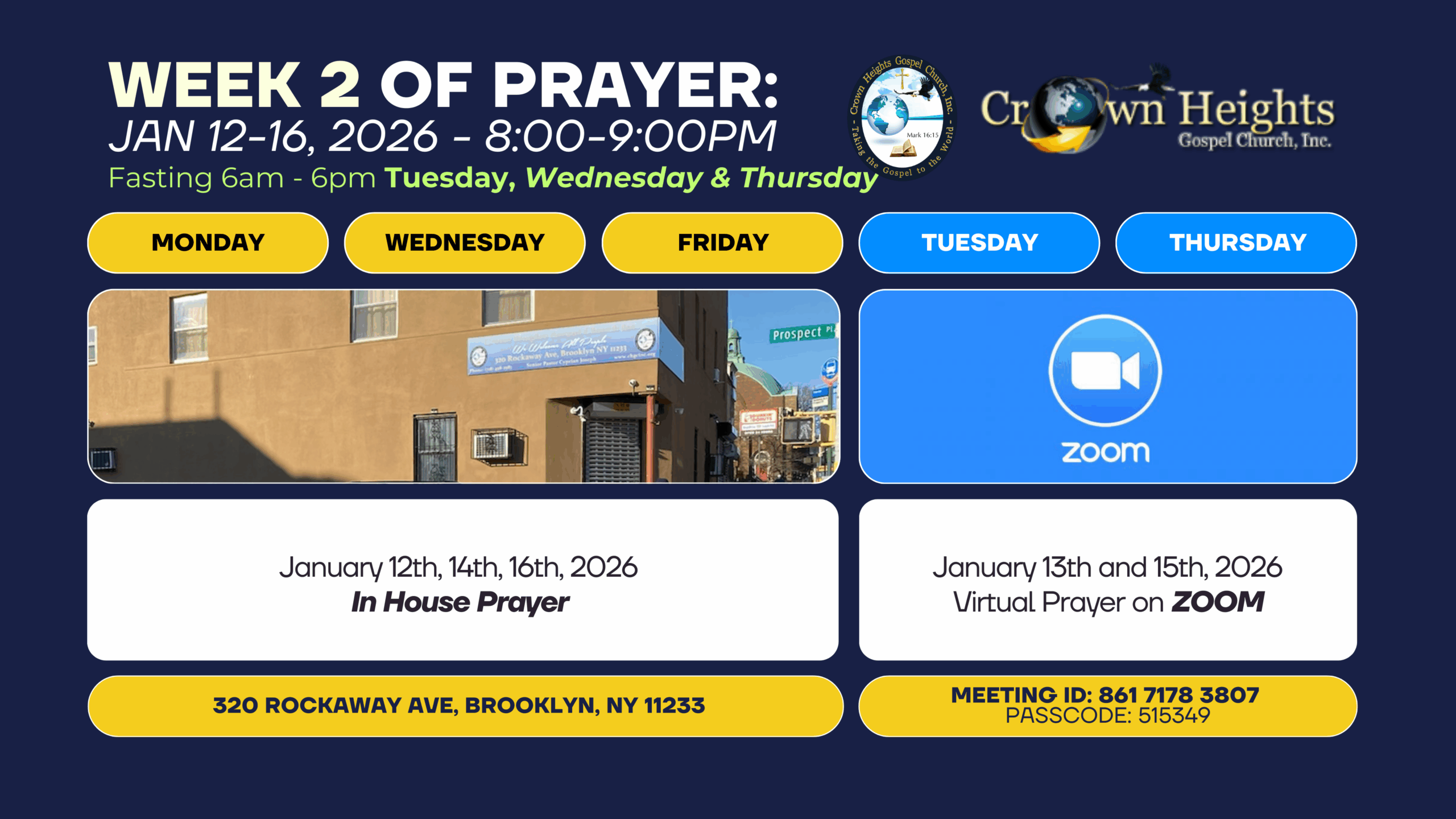 Event details Monday | January 5, 2026 to Friday | January 23, 2026 All Day 320 Rockaway Ave, Brooklyn, NY 11233 Save Event to Calendar Save to iCalendar Save to Google Calendar Save to Outlook Save to Outlook Online Save to Yahoo! Calendar