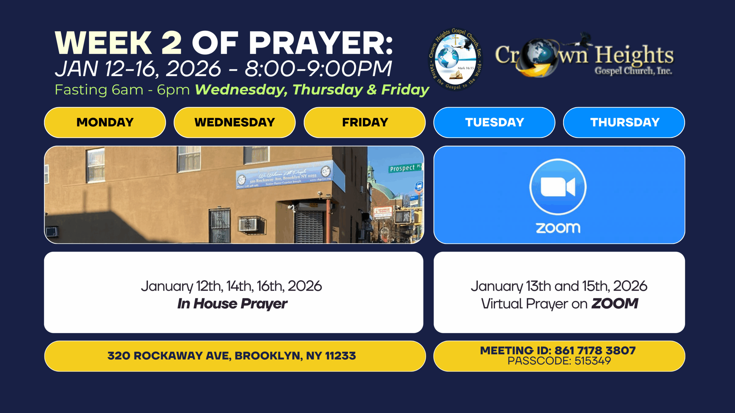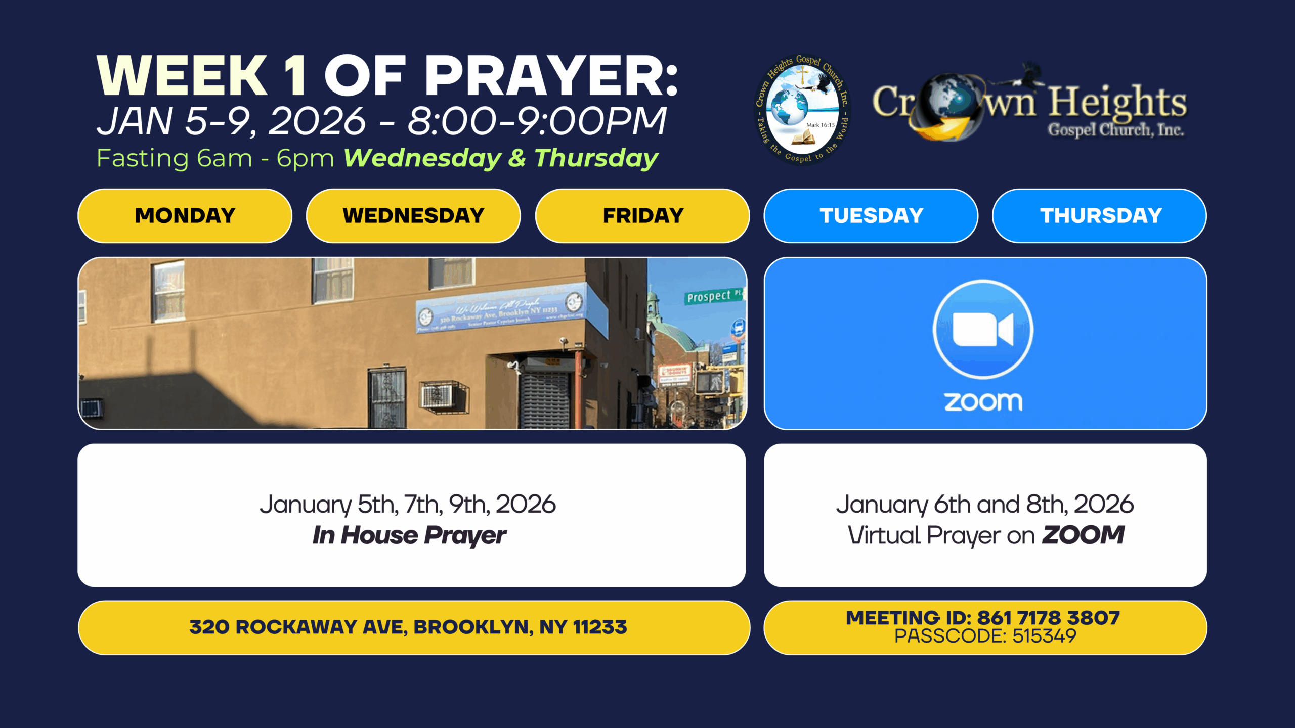 Event details Monday | January 5, 2026 to Friday | January 23, 2026 All Day 320 Rockaway Ave, Brooklyn, NY 11233 Save Event to Calendar Save to iCalendar Save to Google Calendar Save to Outlook Save to Outlook Online Save to Yahoo! Calendar
